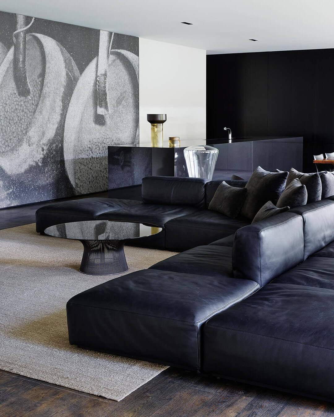 The kitchen and living spaces are cleverly defined through a meticulous approach to materiality, furniture and lighting.