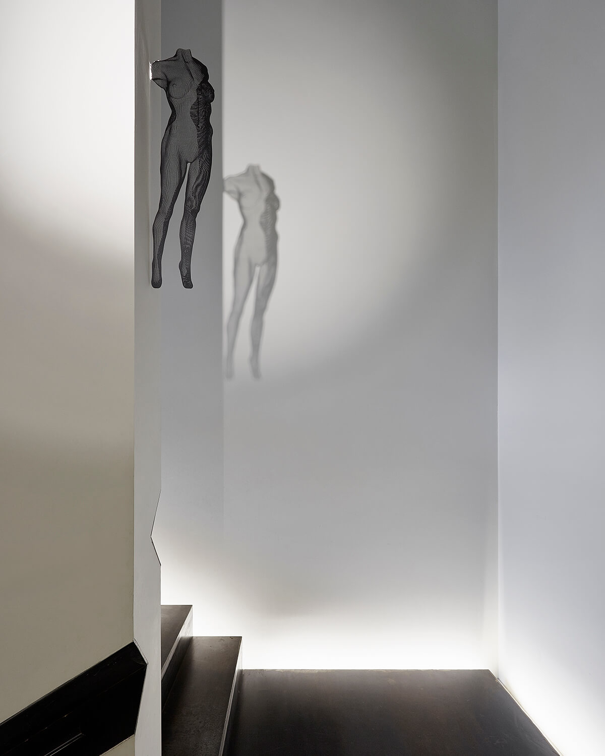 Tucked behind a heritage façade, the interiors have been completely repurposed into a highly detailed family home and adjoining studio, each space tailored to its unique use but cohesive within the overall masterplan. Spread above two levels, the lower floor plane houses a living space and studio, while the upper kitchen, dining and bedrooms offer a private urban oasis. An elongated, continuous steel ribbon staircase provides a dramatic entry point which transitions into the elegant contemporary interior.